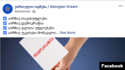 მმართველი პარტია "ქართული ოცნება" Facebook-ზე ფულს იხდის იმ ვიდეოს ჩვენებებში, რომელიც სალომე ზურაბიშვილის მხარდასაჭერად არის დამზადებული და შეიცავს მოწოდებას "პრინციპული არჩევანის" გაკეთების შესახებ. სალომე ზურაბიშვილი, მიუხედავად იმისა, რომ მმართველი პარტიის მხარდაჭერით სარგებლობს, არჩევნებში მონაწილეობს დამოუკიდებელი კანდიდატის სტატუსით​.