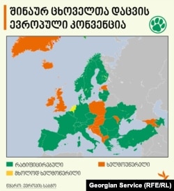 ერთი-ერთი ასეთი დოკუმენტია “შინაურ ცხოველთა დაცვის ევროპული კონვენცია”, რომელიც 26 ქვეყანას აერთიანებს (მაგრამ არა საქართველოს).