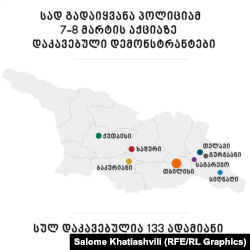 არა, არ გვინდა ხელფასების მომატება, ვიმყოფინებთ, ოღონდ თქვენ არ გამოხვიდეთ აქციაზეო და აი, ეს ხალხი, გაბოროტებულები იმის გამო, რომ სახლში ვერ მიდიან და აქციაზე დგომა უწევთ ჩვენს სამწყემსად, ვინც მოხვდებათ ხელში, ყველას აკავებდნენ”, - უყვება რადიო თავისუფლებას თეკო მეგენეიშვილი. ის თავადაც მონაწილეობდა “აგენტების კანონის” მიღების საწინააღმდეგო აქციებში და შემდეგ უკვე სასამართლოში იცავდა დაკავებულებს. თეკოს დაცვის ქვეშ მყოფებიდან 2 სტუდენტს სასამართლომ უკვე შეუფარდა 2000-ლარიანი ჯარიმა. აფხაზეთიდან დევნილი სტუდენტები პოლიციამ 8 მარტს, დაახლოებით საღამოს 6 საათზე დააკავა ინგოროყვას ქუჩაზე, როცა ისინი აქციიდან სახლში ბრუნდებოდნენ. სასამართლოზე ჩვენების მიცემისას სამართალდამცველებმა თქვეს, რომ სტუდენტები მათ “მონებს” ეძახდნენ და შეურაცხყოფას აყენებდნენ.