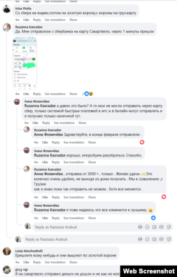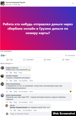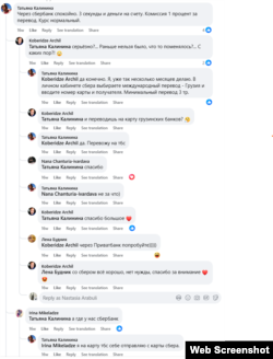 ფეისბუკჯგუფში Русскоговорящая Грузия [რუსულენოვანი საქართველო - რ.თ.] 15 აპრილს დავითი კითხულობს: „ვინმეს ხომ არ გაგიგზავნიათ "სბერბანკიდან" ონლაინ გადარიცხვით ფული საქართველოში ბარათის ნომრით?”