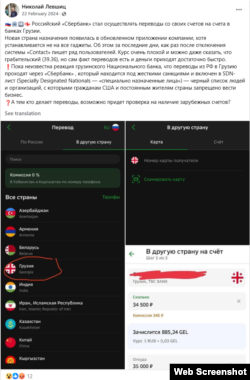 ერთ-ერთი პირველი, ვინც შენიშნა, რომ "სბერბანკმა" ინტერნეტბანკში IBAN-ით საერთაშორისო გადარიცხვების ჩამონათვალში საქართველო დაამატა, ნიკოლაი ლევშიცი იყო. ის საქართველოში მცხოვრებ რუსეთის მოქალაქეებს შორის ერთ-ერთი ყველაზე დიდი აუდიტორიის მქონე ბლოგერია.