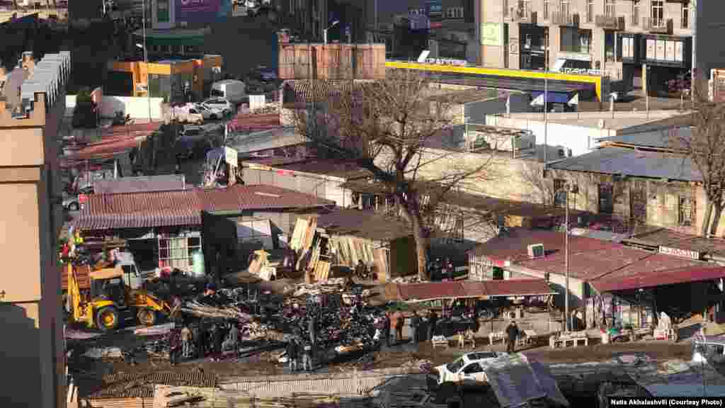 დამწვარი მაღაზია ქავთარაძის ბაზრობაზე: ხანძრის დროს და ხანძრიდან ერთ კვირაში
