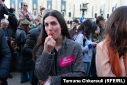 "ახლა ისტორიაში იწერება ისეთი რამ, რაც დასავიწყებელი არაა - თავისუფლებისთვის ბრძოლა. აქ ნახევარზე მეტი ქალია გამოსული. ჩემი აზრით, თავისუფლებისთვის აი, ეს ბრძოლა და ქალების უფლებებისთვის ბრძოლა ერთმანეთზე გადაეჯაჭვა ამ დღეს".
