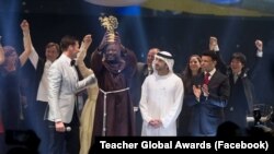 მასწავლებლის ჯილდოს მიზანი პროფესიის პოპულარიზაცია და ისეთი მასწავლებლების აღმოჩენაა, რომლებიც განსაკუთრებული ძალისხმევის ფასად გადასცემენ ცოდნას ბავშვებს. ამ ჯილდოს გამარჯვებული იღებს მილიონ დოლარს. დაჯილდოება ყოველ წელს ტარდება. ქართველი მასწავლებელი დაჯილდოებაში პირველად მონაწილეობდა.