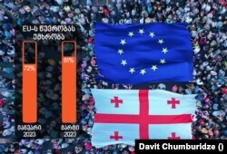 2023 წლის იანვარში ევროკავშირის წევრობას გამოკითხულთა 72% ემხრობოდა, ხოლო მარტის თვეში, საპროტესტო აქციების დროს, ევროკავშირში გაწევრების მხარდაჭერა კიდევ უფრო გაიზარდა და 81%-ს მიაღწია.