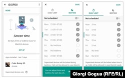 აქ შეგიძლიათ, დააყენოთ არამარტო დრო, როდის დაიბლოკება თქვენი შვილის ტელეფონი, არამედ ისიც, თუ რა დრო გაატაროს დღეში ეკრანთან.