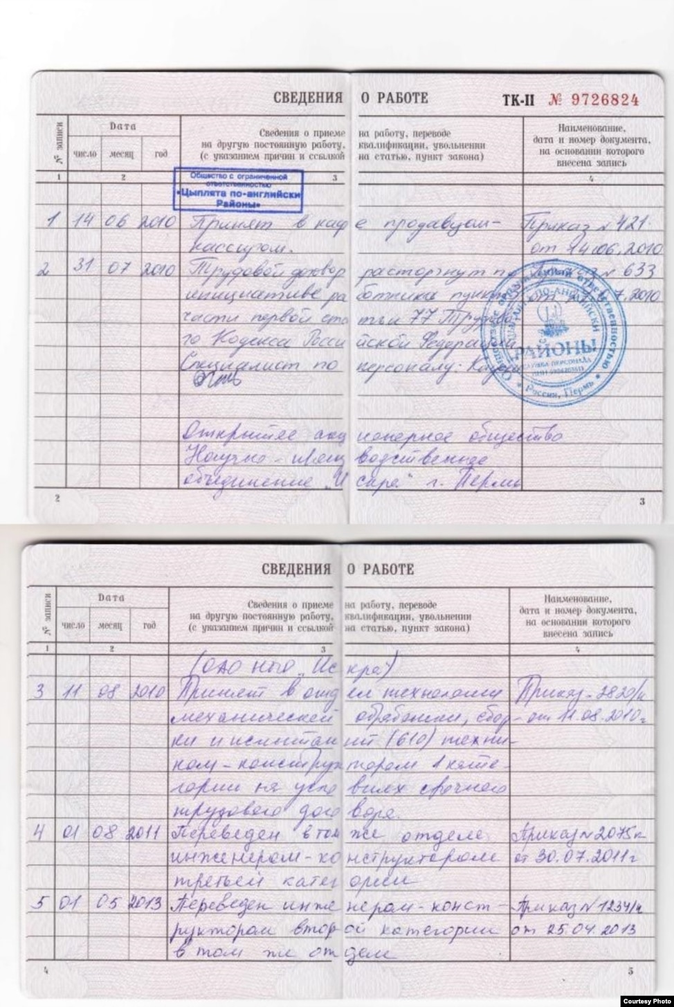 „ისტორიულად მთელი ჩვენი ოჯახი - ბაბუები, ბებიები - მუშაობდნენ ამ საწარმოში და არცთუ დაბალ პოზიციებზე. ბაბუა, ალექსანდრ ივანოვიჩ საბანცევი, ხომ გარკვეული პერიოდი ლევ ლავროვის (პერმის იმ საკონსტრუქტორო ბიუროს მეორე ხელმძღვანელი, რომლის მემკვიდრეც გახდა სსგ „ისკრა“ - რედ.) მარჯვენა ხელი იყო“, - ამბობს ილინიხი და გვიჩვენებს შრომის წიგნაკს, რომლიდანაც ირკვევა, რომ მისი რეკრუტირება ინსტიტუტში სწავლის ბოლო წელს მომხდარა.