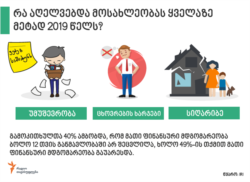 არ გადაჭრილა ის პრობლემები, რომლებიც მოსახლეობას წლის განმავლობაში ყველაზე მეტად აღელვებდა. IRI-ის მიერ ჩატარებული კვლევის შედეგების მიხედვით, ესენია უმუშევრობა, ფასების ზრდა და სიღარიბე. მხოლოდ ამის შემდეგ მოდის კონფლიქტები, განათლება და ჯანდაცვა.