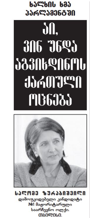 „საქართველო ჯერ კიდევ დაძაბულ, მოუწესრიგებელ და ქაოსური ურთიერთობის მორევში ტრიალებს, მის თავზე დამოკლეს მახვილივით კიდია მრავალპარტიული არჩევნების დღე - 28 ოქტომბერი“. - მწერალი ირინე ტალიაშვილი .