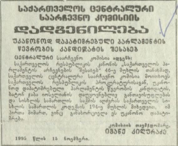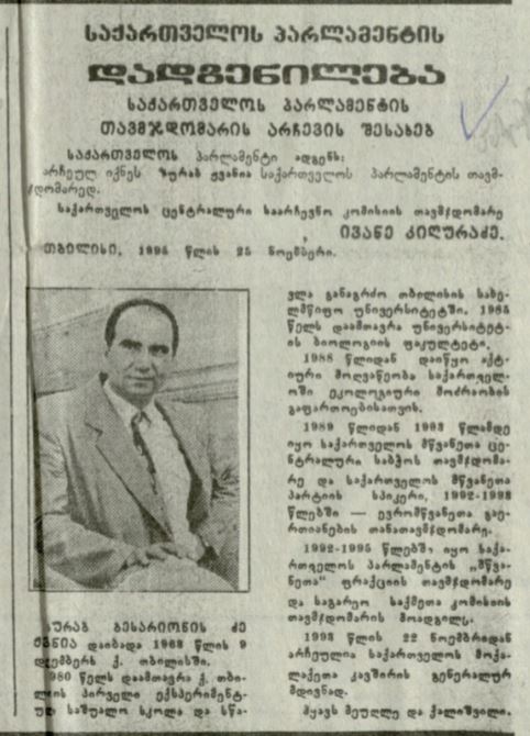 • ცესკოს მოქმედი თავმჯდომარის გადადგომა და მისი „საერთაშორისო გამჭვირვალობის“, „სამართლიანი არჩევნებისა“ და „საიას“ მიერ ნომინირებული კანდიდატით ჩანაცვლება
