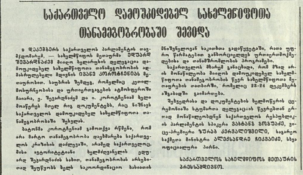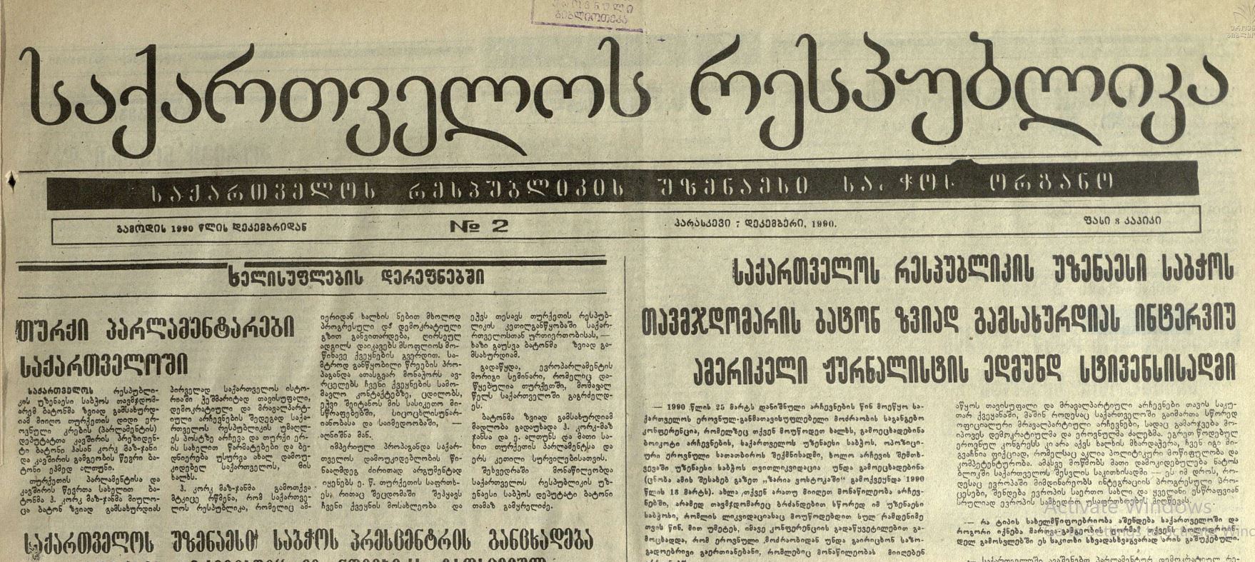გაზეთი "საქართველოს რესპუბლიკა". 1990 წ. 7 დეკემბერი