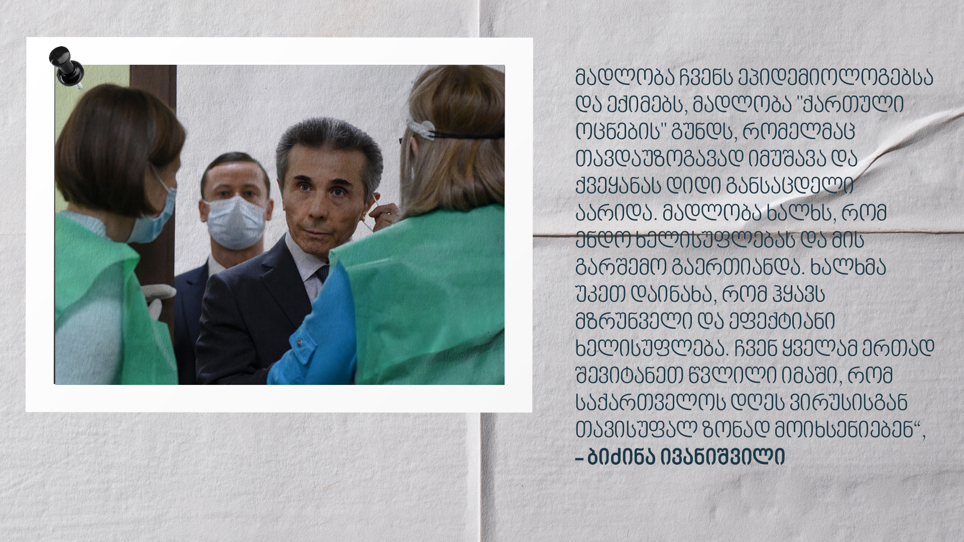 „თუ დაფიქსირდება თუნდაც ერთპროცენტიანი გადახრა „ქართული ოცნების“ სასარგებლოდ, „ქართული ოცნება“ გამოაცხადებს რიგგარეშე არჩევნებს. მე კი, როგორც საარჩევნო შტაბის ხელმძღვანელი, დავტოვებ ყველა პოლიტიკურ თანამდებობას და სრულად ჩამოვშორდები პოლიტიკურ საქმიანობას“, - ირაკლი კობახიძე, „ქართული ოცნების“ აღმასრულებელი მდივანი