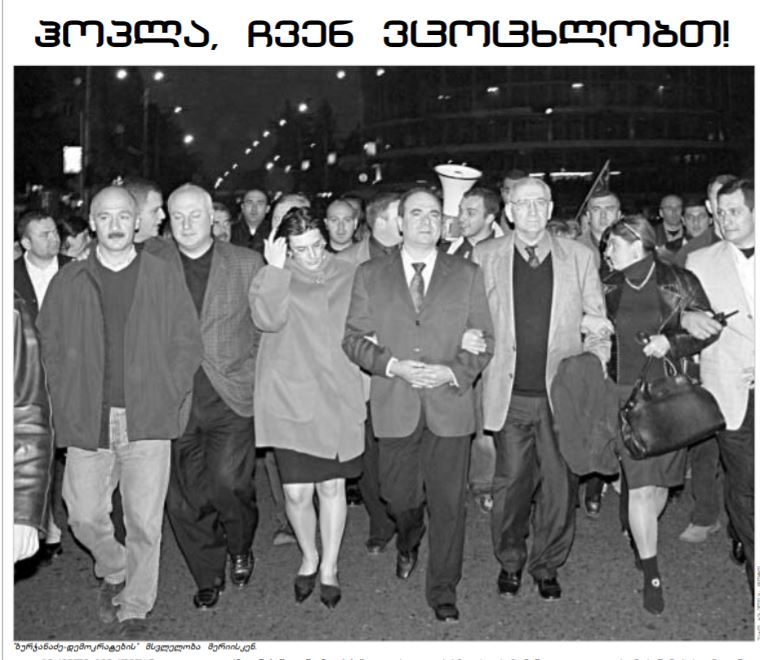ვინ მისცემს ხმას კომუნისტურ პარტიას? ალბათ, 400-ათასიანი ნომენკლატურა, სეპარატისტები, სუკის მუშაკები, ეკონომიკური მაფიის წევრები... ამიტომ არჩევნებში კომუნისტური პარტიის დასამარცხებლად აუცილებელია მთელი ეროვნული მოძრაობის გაერთიანება, სრული კონსოლიდაცია. არჩევნების დღეს ერთმანეთის პირისპირ უნდა დარჩეს ორად ორი ბლოკი - კომუნისტური პარტია და ეროვნული მოძრაობა“.