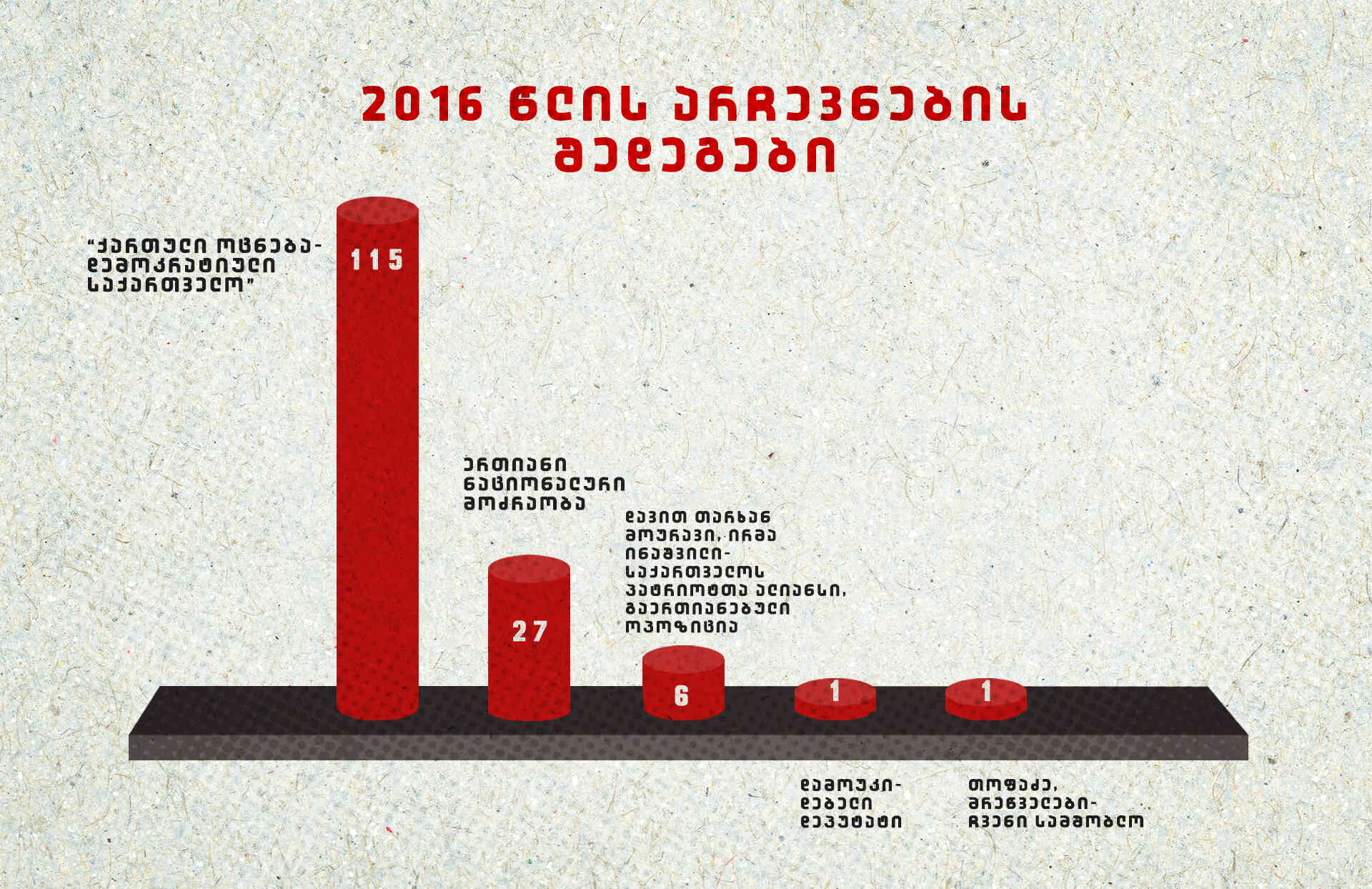 • „მრგვალი მაგიდა–თავისუფალი საქართველო’’ – 53,99% , 81 მანდატი