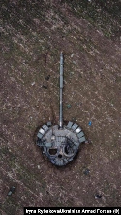 განადგურებული რუსული ტანკის, თავის ქალის ფორმის, კოშკურის ფოტო გადაიღო, როგორც 38 წლის რიბაკოვა ჰყვება, დრონის საშუალებით მას მერე, რაც უკრაინის ჯარმა მძაფრი ბრძოლის შემდეგ დაიბრუნეს ხარკოვის ოლქის სოფელი ჰუსარივკა. „გთხოვთ, უბრალოდ გახსოვდეთ, ჩემი ბევრი ამხანაგი დაიღუპა იმ ბრძოლაში“, ამბობს რიბაკოვა და ასახელებს ჯარისკაცებს, იულიან სტუპაკსა და ოლექსანდრ გარბუზს, რომელთაც სიკვდილის შემდეგ მიენიჭათ უკრაინის უმაღლესი ჯილდო ჰუსარივკის დაბრუნების დროს გამოჩენილი თავდადებისთვის.