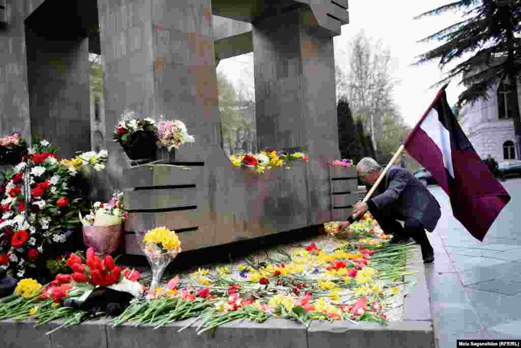თბილისში, პარლამენტის შენობის წინ, 9 აპრილის მემორიალთან პატივი მიაგეს 1989 წელს, საბჭოთა არმიის სამხედროების მიერ თბილისში, საქართველოს დამოუკიდებლობის მოთხოვნით მიმდინარე მშვიდობიანი აქციის დარბევის მსხვერპლთ.