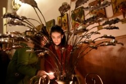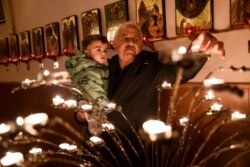 ბაბუა შვილიშვილს სანთლების დანთებაში ეხმარება.