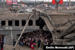 კიევის ოლქის ირპენის მცხოვრებლებმა, ვიდრე საევაკუაციო ტრანსპორტს მიაღწევენ, დაბომბვის შედეგად დანგრეული ხიდი უნდა გაიარონ. 5 მარტი