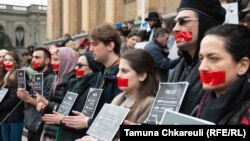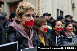 პროტესტის რამდენიმე მონაწილემ ხმა პირდაპირი მნიშვნელობით “ჩაიხშო” - აქტივისტებმა დროებით პირზე სკოჩი აიკრეს და ხელები შეიკრეს. მათ შორის იყო ქალთა ორგანიზაცია GrlzWave-ის თანადამფუძნებელი თეკლა თევდორაშვილიც.