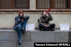 “აქ დავიბადე, აქ გავიზარდე და ჩემთვის მნიშვნელოვანია ამ პროტესტზე აზერბაიჯანულად მქონდეს წარწერა, რადგან ვაჩვენო, რომ აზერბაიჯანელებსაც გვაწუხებს ეს საკითხი და სხვა აზერბაიჯანელებსაც გავაგებინო, რისი თქმა გვინდა“, - ამბობს ნიამადინ შარაევი. ბენო კასიმოღლუ შავად გაფერადებული ფურცლით მოვიდა -