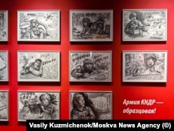 ექსპონატებს შორისაა ფანქრით შესრულებული ნახატების სერია. ის ასახავს ჩრდილოეთ კორეის ჯარისკაცებს, რომლებიც იბრძვიან რუსეთის კურსკის რეგიონში შეჭრილი უკრაინის ჯარის წინააღმდეგ.