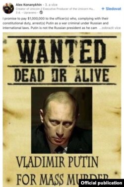 რამდენიმე დღის წინ კონანიხინმა სოციალურ ქსელში პლაკატი გამოაქვეყნა, რომელზეც ეწერა: „იძებნება: მკვდარი ან ცოცხალი. ვლადიმერ პუტინი. მასობრივი მკვლელობისთვის.“ პოსტერს თან ერთოდა შემდეგი ტექსტი: