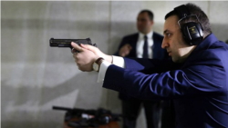 ფოტოზე ასახულია პრემიერი ღარიბაშვილი, რომელიც მაშინდელ შინაგან საქმეთა მინისტრ ალექსანდრე ჭიკაიძესთან ერთად პისტოლეტიდან ისვრის.
