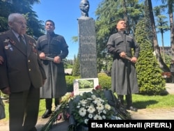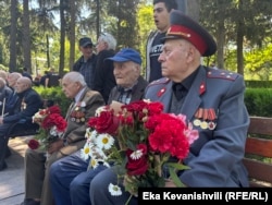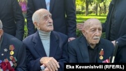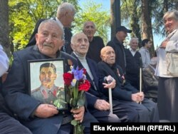 "კიკვიძის ბაღში" წელსაც მივიდა მეორე მსოფლიო ომის მონაწილე ვახტანგ ადამაშვილი - ის ასი წლისაა. ხელში სტალინის პორტრეტი უჭირავს. ფრონტზე 1942 წელს, 17 წლისა გაიწვიეს. ქერჩში იბრძოდა.