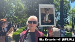 რაც დრო გადის, 9 მაისს სულ უფრო მეტი შვილი მიდის პარკში - ომის მონაწილე, უკვე გარდაცვლილი მშობლების ფოტოებით. ამ ქალს დედის, ნადეჟდა დავიდოვას სურათი უჭირავს.