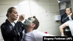 მოსკოვში შლიან კედლის ნახატს, სადაც ალექსეი ნავალნია გამოსახული. Photo: Olga Maltseva (AFP)