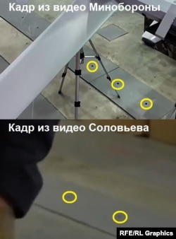 თავდაცვის სამინისტროს ვიდეო, რომელიც 2024 წლის ოქტომბერში გამოქვეყნდა, ასევე შეიცავს რამდენიმე დეტალს, რაც მიუთითებს, რომ ის შესაძლოა საგამოფენო ცენტრ „პატრიოტრია“ გადაღებული: მაგალითად, იატაკზე ლიუკები ტექნიკური ღიობებით (ისინი ჩანს „რუბიკონის“ აღჭურვილობის საწყობში, რომელიც სოლოვიოვის ვიდეოშია).
