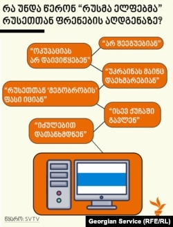 “ელფების” სახელმძღვანელოში საქართველოზეც ბევრი წერია. იქ ახსნილია, რა უნდა დაწერონ საქართველოში ანტირუსულ განწყობებზე, საქართველო-უკრაინის ურთიერთობებსა და საქართველოს ოკუპაციაზე.