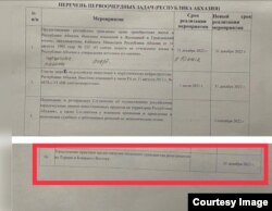 „D News აფხაზია“ აქვეყნებს დოკუმენტს სათაურით „პრიორიტეტული ამოცანების ნუსხა (აფხაზეთის რესპუბლიკა)“. მასში ნათქვამია „რუსეთის მოქალაქეებისთვის საცხოვრებლის შესყიდვის უფლების მინიჭების შესახებ“ და „ენერგეტიკის სფეროში რუსული ინვესტიციების განხორციელებაზე აკრძალვის მოხსნის შესახებ“. ბოლო, მე-16 პუნქტი ითვალისწინებს „რეპატრიანტებისთვის (თურქეთიდან და ახლო აღმოსავლეთიდან) აფხაზეთის მოქალაქეობის მინიჭების პროცედურის გამკაცრებას“.