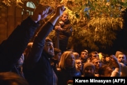 საპროტესტო აქციის მონაწილეებს ემოციური რეაქცია ჰქონდათ ახალი ამბის გამო ერევანში, პარლამენტის შენობასთან.