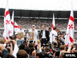 ოპოზიციის ლიდერები სტადიონზე შეკრებილ მომხრეებს მიმართავენ