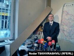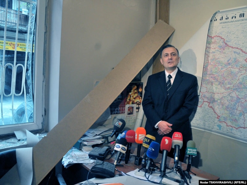 ლეიბორისტული პარტიის ლიდერი შალვა ნათელაშვილი აფეთქების შედეგად დაზიანებულ ოფისში