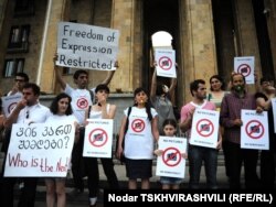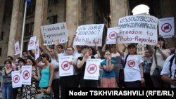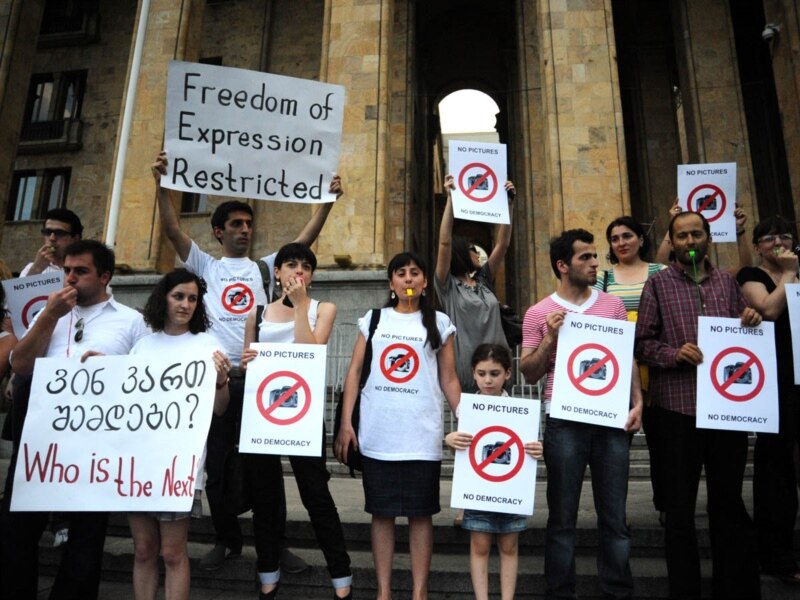 ჟურნალისტები, არასამთავრობო სექტორის წარმომადგენლები, მედიაპროგრამების ხელმძღვანელები, მედიაგამომცემლები, მედიასკოლის წარმომადგენლები - დაახლოებით 100-მდე ადამიანი - პარლამენტის წინ ყვითელი და ლურჯი სასტვენებით მივიდნენ და უსტვენდნენ.