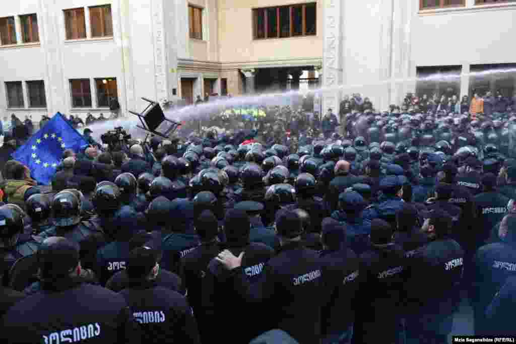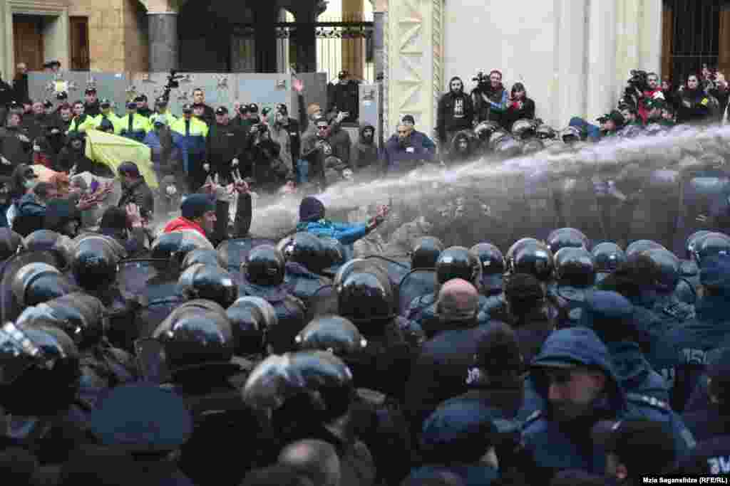 სპეცრაზმმა წყლის ჭავლით დაშალა პიკეტი პარლამენტთან. შსს ხმოვანი სიგნალით აფრთხილებდა აქციის მონაწილეებს, დაეტოვებინათ ტერიტორია.