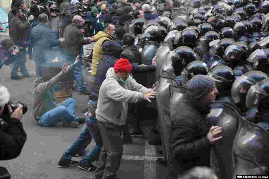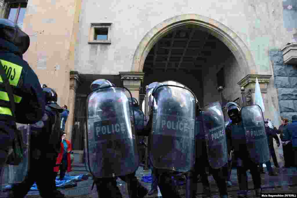 პარლამენტის შენობასთან აქციის დაშლის დროს 18 პირი დააკავეს.