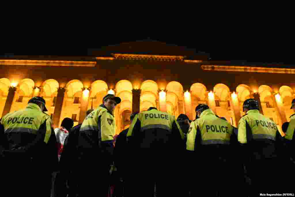 პარლამენტის შენობასთან აქციის დაშლის დროს 18 პირი დააკავეს.