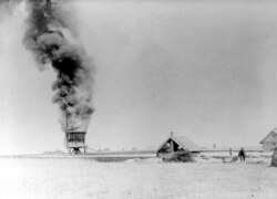 მარცვლეულის სათავსო, რომელსაც ბოლშევიკებმა ცეცხლი წაუკიდეს.
