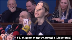 „აი, ამის მონა ხართ თქვენ“, - მიმართა „ევროპული საქართველოს“ დეპუტატმა, ელენე ხოშტარიამ გენერალური პროკურორობის კანდიდატს, ირაკლი შოთაძეს და მიუთითა ბიძინა ივანიშვილის გამოსახულებიან ნიღაბზე.