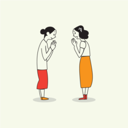 - ორი თითის აწევით (ე.წ. მშვიდობის ნიშანი) მისალმება.