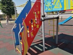 საბავშვო გასართობი კომპლექსი, რომელიც ლაგოდეხის მერიამ 87 ათას ლარად იყიდა, რუსული ანბანით არის გაფორმებული.