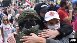 რადიო თავისუფლების ბელარუსული სამსახურის კორესპონდენტი იტყობინება, რომ სპეცდანიშნულების რაზმის თანამშრომლებმა დემონსტრანტების მიმართ სოლიდარობის ნიშნად დაუშვეს ფარები, ზოგიერთი დემონსტრანტი სპეცრაზმელებს გადაეხვია.