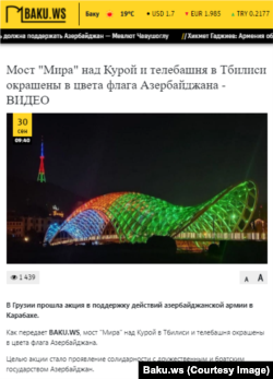 - აზერბაიჯანულ მედიაში გავრცელებული ამბავი, თითქოს ყარაბაღის კონფლიქტში აზერბაიჯანის მხარდასაჭერად თბილისში ანძა და მშვიდობის ხიდი აზერბაიჯანის დროშის ფერებში განათდა. აღნიშული დეზინფორმაცია პირველად აზერბაიჯანულმა საიტმა Oxu.az-მა გამოაქვეყნა, შემდეგ კი ის აიტაცეს როგორც აზერბაიჯანულმა, ასევე სომხურმა გამოცემებმა და ვირუსულად გავრცელდა სოციალურ მედიაში. სინამდვილეში ეს ფოტო არა ყარაბაღის ომის განახლების შემდეგ, არამედ აზერბაიჯანის პირველი რესპუბლიკის დამოუკიდებლობის დღეს - 28 მაისსაა გადაღებული, როცა საქართველომ მეზობელ სახელმწიფოს ეს მნიშვნელოვანი თარიღი მეგობრული ჟესტით მიულოცა.