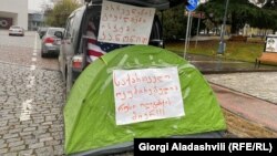 თელავის თეატრთან კარავი დადგეს - ორი აქტივისტი არჩევნების შედეგებს აპროტესტებს