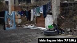 „წინასაარჩევნოდ გავახსენდებით ხოლმე, ჩვენც იმედი მოგვეცემა და რეალურად, აი, რა დღეშიც ვართ, თავად ხედავთ“ – 31 წლის ნინო, 4 შვილის მარტოხელა დედა წლებია ყოფილი ქარხნის ტერიტორიაზე ცხოვრობს. პროდუქტის საყიდლად არის გამოსული. ცდილობს შარვლის ტოტები ზევით აიწიოს. ხელში პარკი უჭირავს: