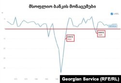 მსოფლიო ბანკისა და საერთაშორისო სავალუტო ფონდის ვებ-გვერდებზე გამოქვეყნებული მონაცემებით, 1994 წელს საქართველოს ეკონომიკა 10,4%-ით შემცირდა. აგვისტოს ომისა და მსოფლიო ეკონომიკური კრიზისის შედეგად საქართველოს ეკონომიკა 2009 წელსაც, 3,65%-ით შემცირდა.