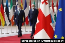 ევროპული საბჭოს პრეზიდენტი შარლ მიშელი საქართველოს პრემიერ-მინისტრს ირაკლი ღარიბაშვილს მასპინძლობს.